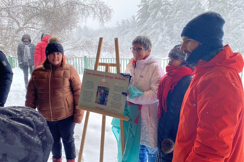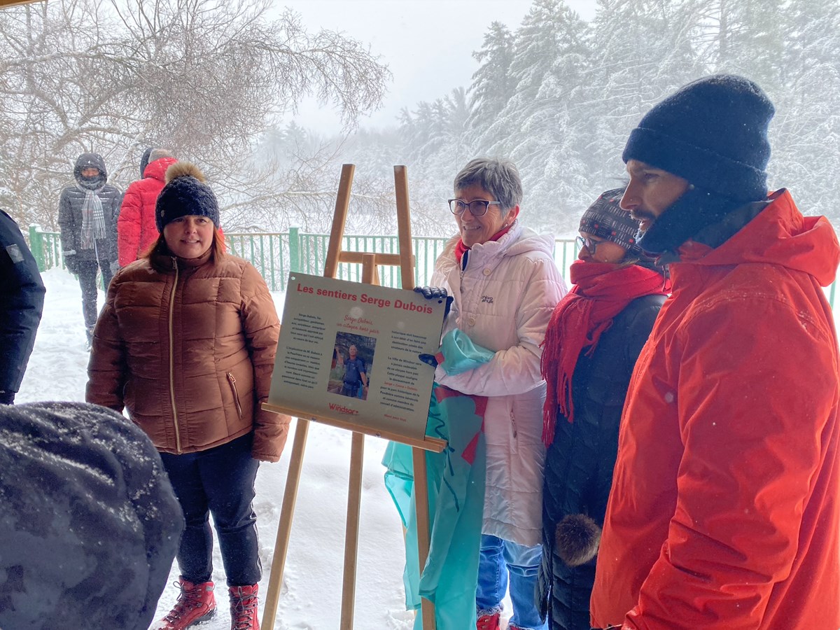 Tous ces gens s’étaient donné rendez-vous pour le dévoilement d’une plaque commémorative qui sera installée à l’entrée des sentiers du parc historique de la Poudrière, un des endroits où M. Dubois a fait sa marque comme bénévole.