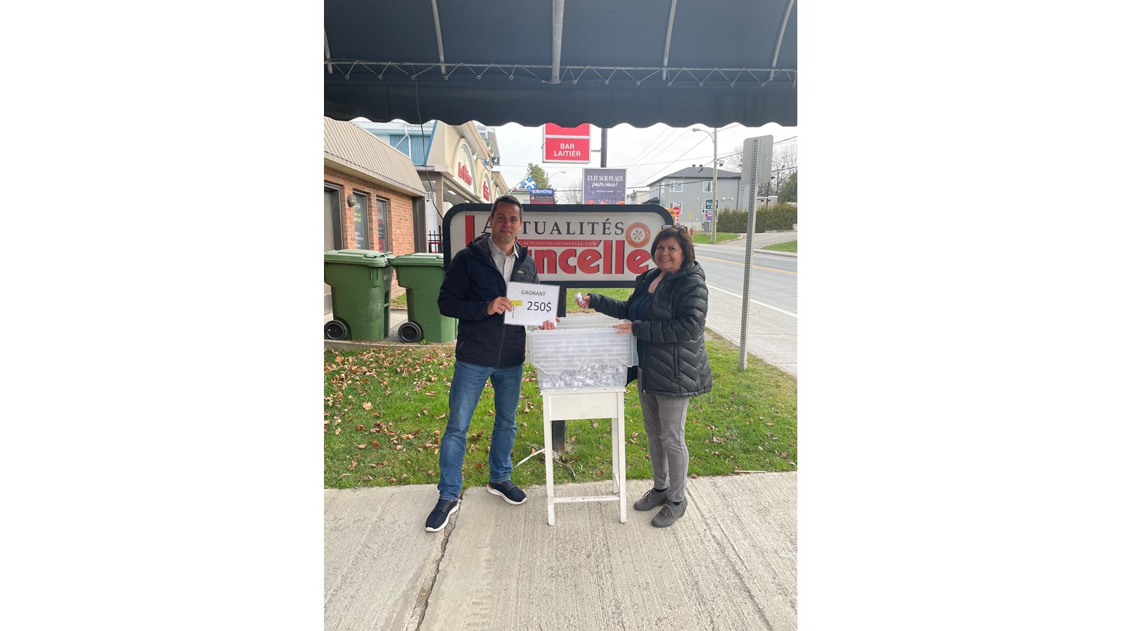 Windsor — Dans le cadre de la campagne de financement du Centre de répit Théo Vallières, Chantal Darveau, directrice du journal Actualités - L’Étincelle avec Mathieu Viens, siège sur conseil d’administration du Centre de répit Théo Vallières, ont procédé à un quatrième tirage le 11 novembre. Ainsi, André Martel et Emmanuelle Cloutier ont gagné 700 $ alors que Providence Anctil s’est mérité 250 $. Pas moins de 400 billets ont été vendu au coût de 60 $ l’unité. Le prochain tirage aura lieu le 18 novembre.