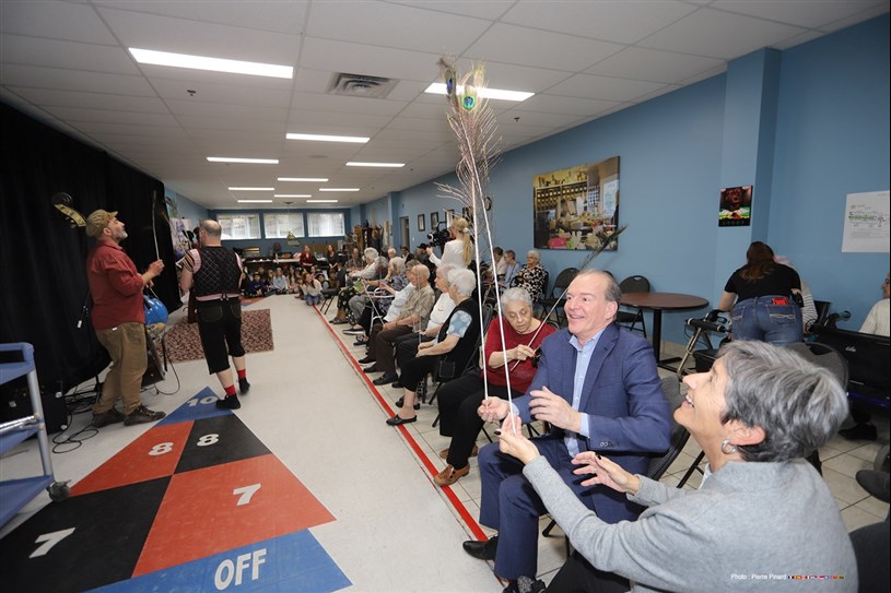 Les aînés et les enfants ont dans un premier temps présenté des numéros de jonglerie et d’équilibre avant de retrouver leur trio clownesque, sous l’œil amusé de la mairesse de Windsor, Sylvie Bureau, et du député de Richmond à l’Assemblée nationale, André Bachand.