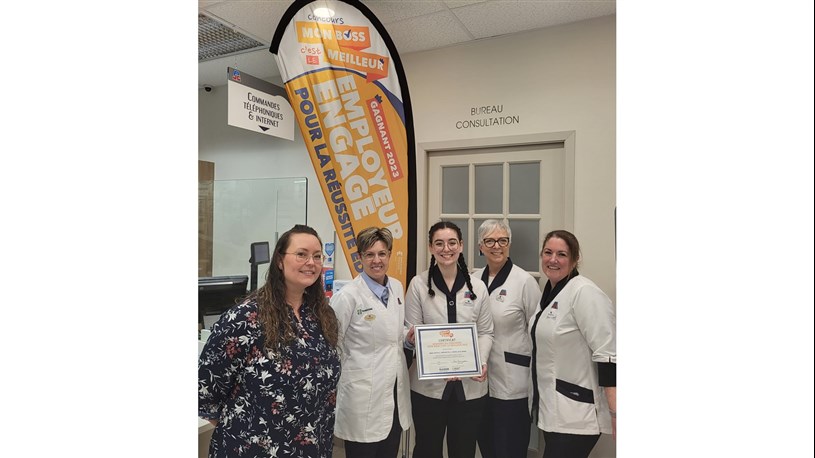 La pharmacie Jean Coutu J. Fréchette, C. Rehel & M. Khan élue employeur engagé