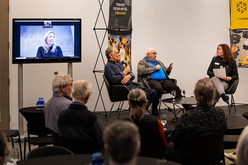 Christine Dufresne, directrice des expositions de Pointe-à-Callière, Yvan Bouliane, collectionneur, Gilles Rivest, modéliste et Andrée Richer, chargée de projet recherche et rédaction du Musée de l’ingéniosité J. Armand Bombardier.