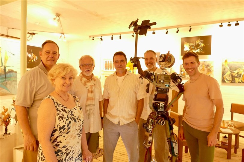 À noter également la présence de Lannïck Dinnard et la participation à l’exposition, du bachelier en arts plastiques et Philosophie, Eric Nado. Mentionnons que ce dernier, à l’aide de sa sculpture d’assemblage intitulée Selfie Man, « … interpelle la suffisance dont fait preuve l’humain face à lui-même dans une mécanisation parfaite et pourtant obsolète, de la captation de l’image de soi.»