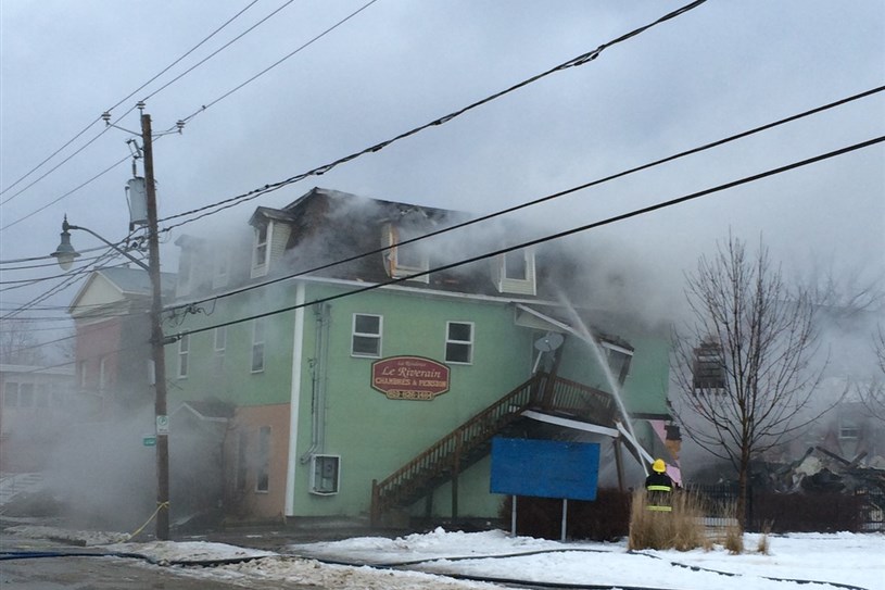 Richmond (RC) – L’ancien Hôtel St-Jabob s’est rapidement envolé durant l’après-midi du 4 janvier. Vers 7 h, des passants qui circulaient sur la rue Principale ont aperçu de la fumée sortant d’une fenêtre située à l’arrière de l’édifice centenaire. Dès lors, le feu a rapidement pris de l’ampleur au moment de l’arrivée des pompiers du Service de sécurité incendie de la région de Richmond (SSIRR). Sur les 30 petits appartements de l’édifice Le Riverain, 15 locataires habitaient l’endroit. Trois autres personnes ont été délogées du bâtiment voisin. Tous ont été évacués sans difficulté, à l’exception d’une personne qui a subi une blessure à la jambe alors qu’elle tentait de s’échapper par une fenêtre. Deux autres personnes et été incommodées par la fumée.