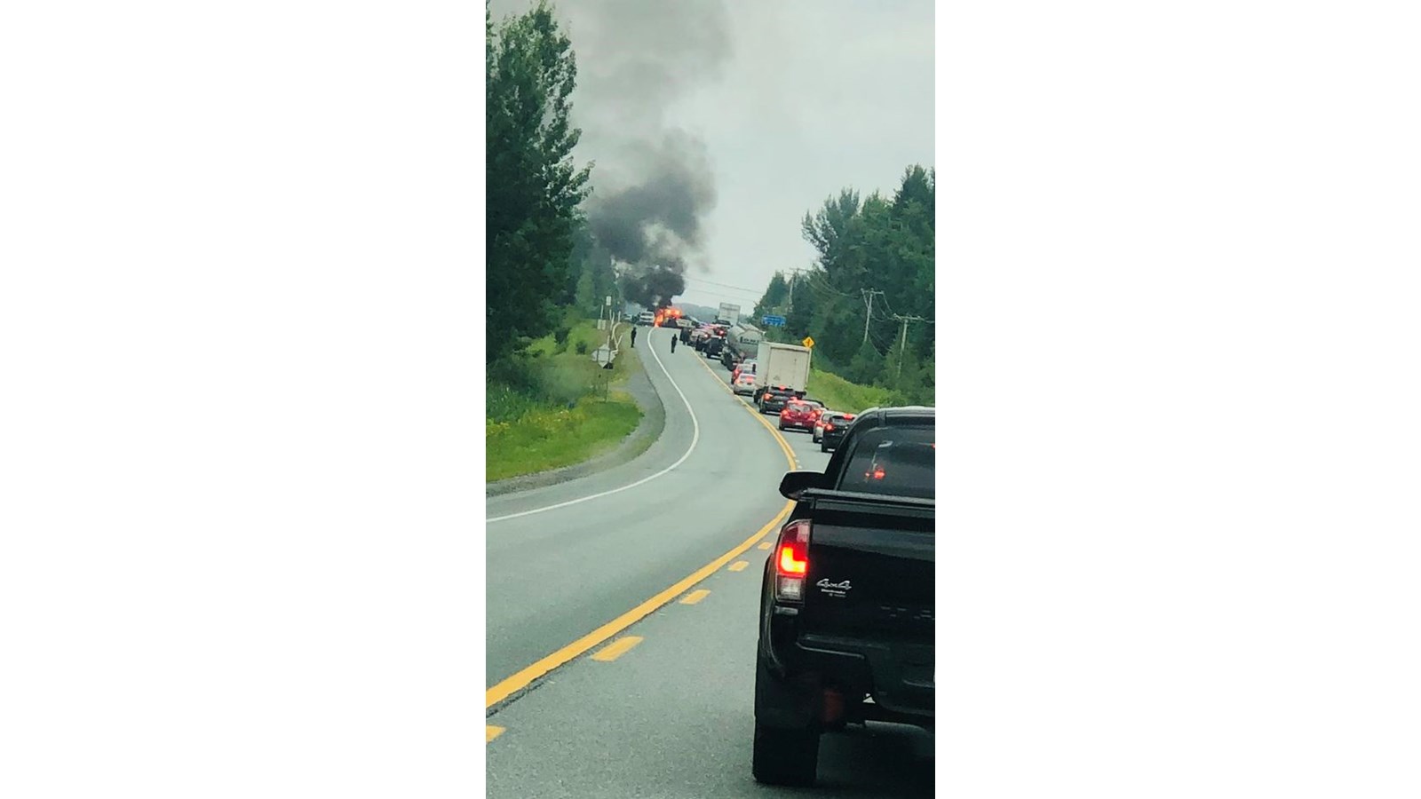 Les pompiers ont rapidement été demandés sur les lieux, afin de maitriser le début d’incendie et contrôler la circulation, qui se faisait en alternance jusqu’à la fin de l’intervention aux alentours de 18 h 30.