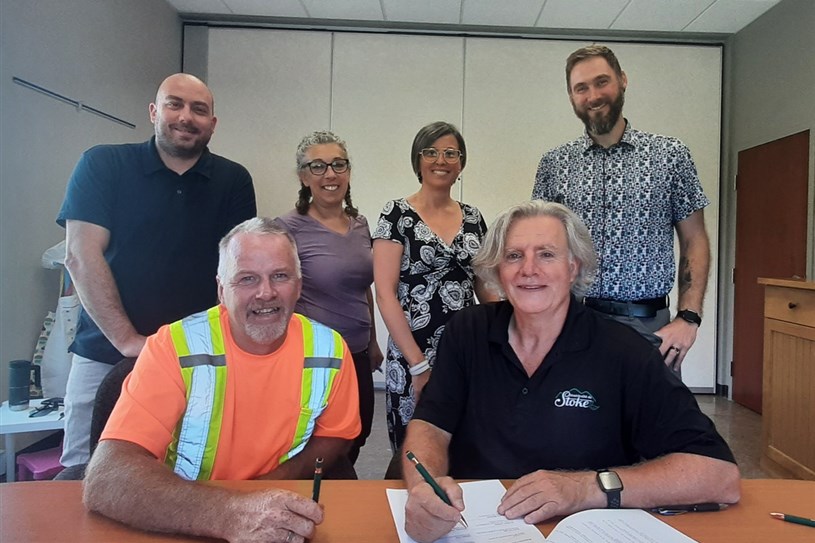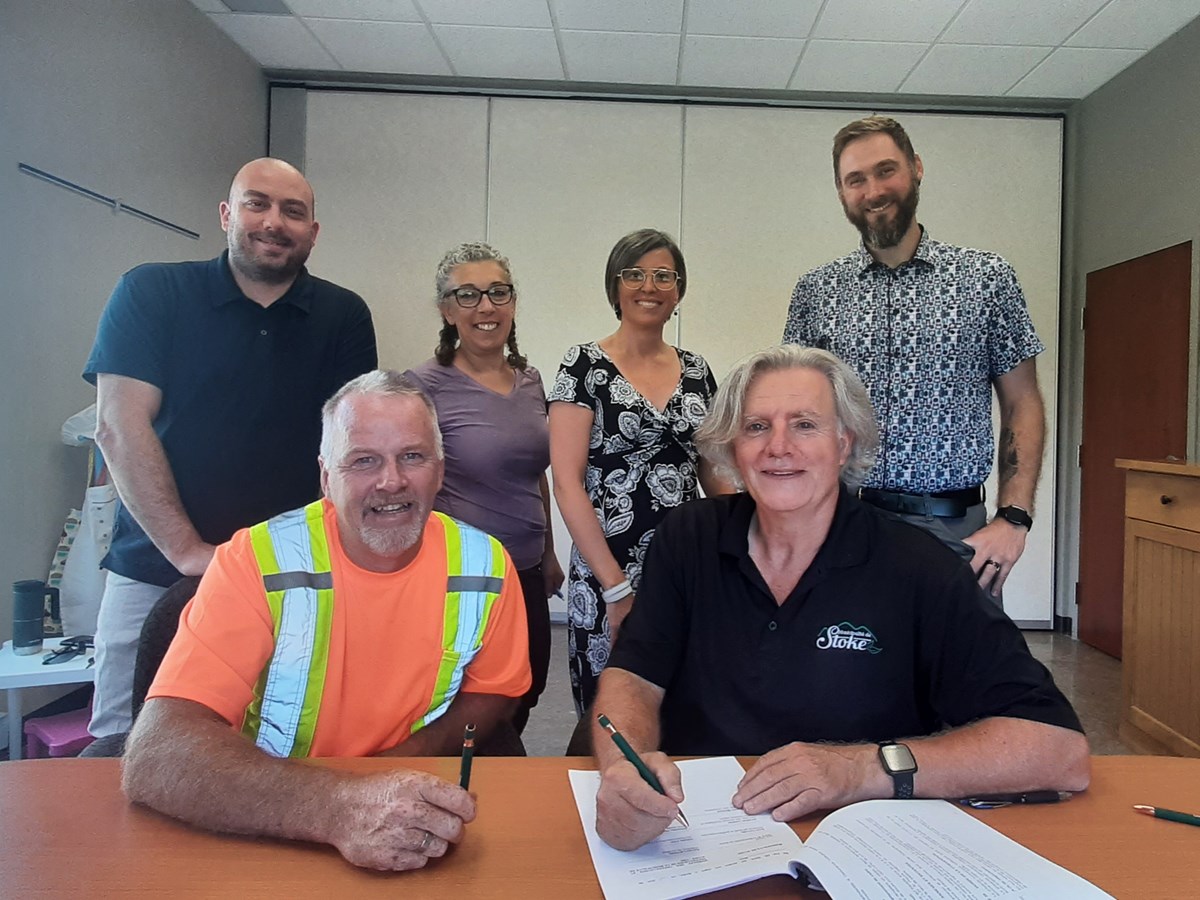 Stoke — C’est le 5 juillet dernier, en présence des membres du comité de négociation, que la nouvelle convention collective pour le personnel syndiqué col blanc et bleu de la Municipalité de Stoke, représenté par la Fédération des employées et employés de services publics — Confédération des syndicats nationaux (FEESP-CSN), a été officiellement signée.