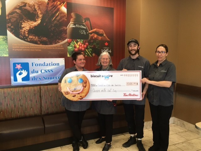 Cette année, à Val-des-Sources, les propriétaire(s) de restaurant Tim Hortons, Claude Boutin, Johanne Pearson et leurs invités ont contribué à récolter 15 159 $ en soutien à l’organisme la Fondation du CSSS des Sources. C’est la 3e année que Tim Hortons appuie la Fondation. Les fonds serviront à l’achat d’équipements destinés aux usagers de l’Hôpital, CLSC et CHSLD des Sources.