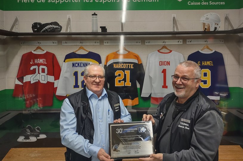 Mentionnons également qu’une plaque commémorative fut remise au président du tournoi, M. Yves Côté, par les vice-présidents de hockey Estrie et de hockey Québec, afin de souligner les 30 ans du tournoi.