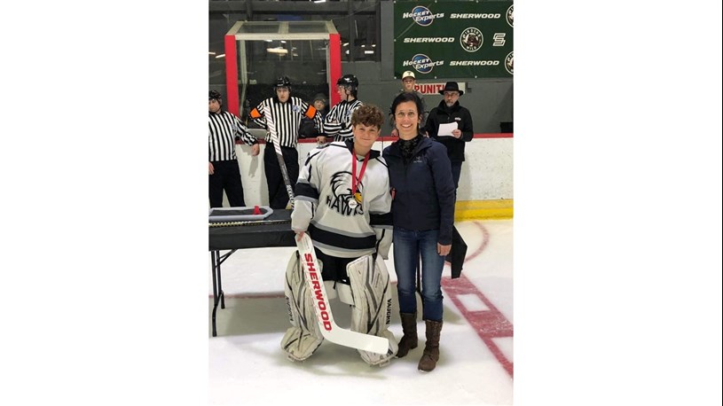 Dans la classe M15, B, Benjamin Poirier, des Hawks Asbestos-Warwick-Kingsey Falls, a reçu le titre de meilleur gardien de but du Tournoi.