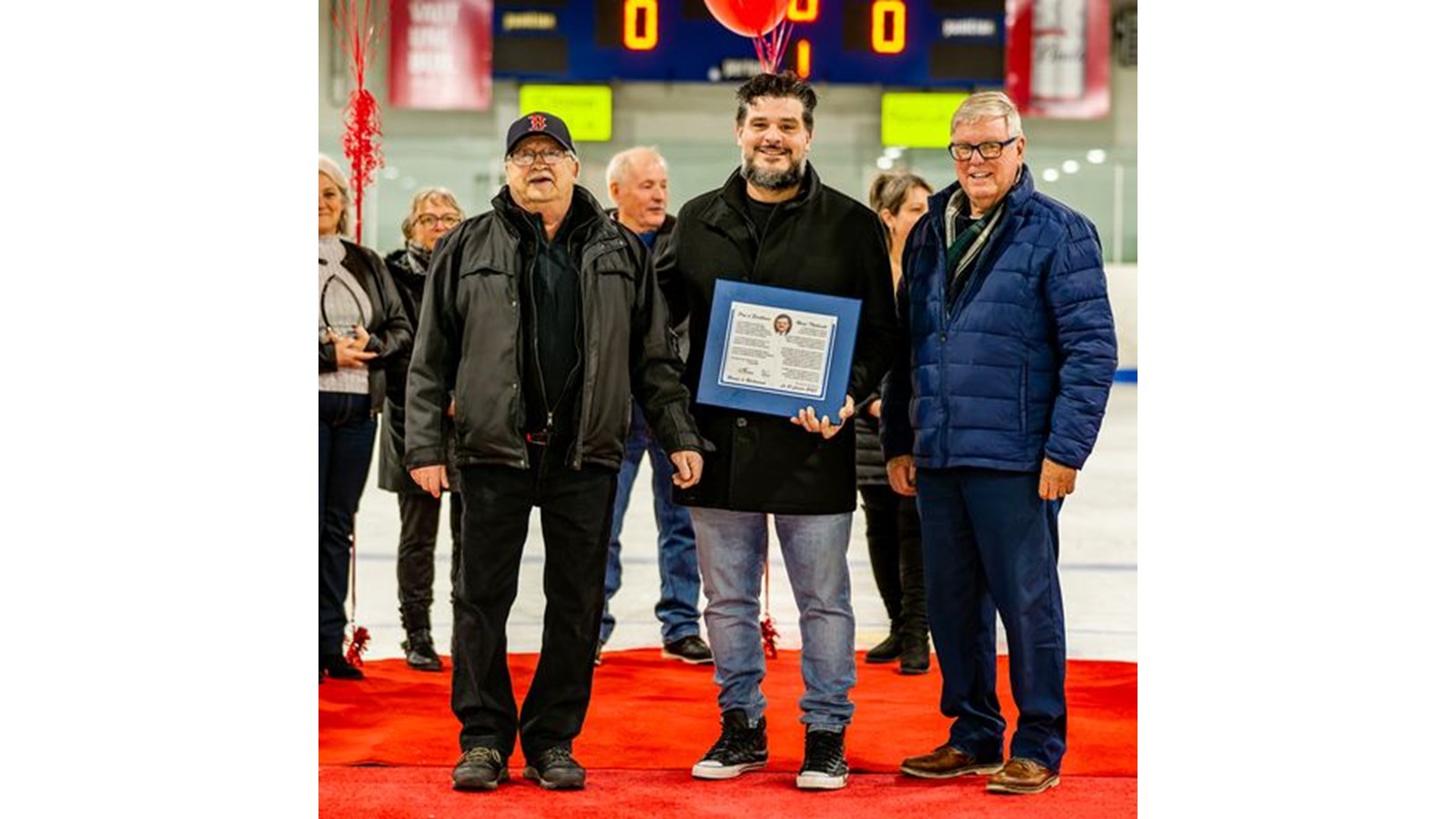 Le comité organisateur du tournoi Mousquiri a tenu à rendre hommage à un collaborateur de longue date qui a pris sa retraite en 2021, André « Bou-Bou » Leclerc pour tous les services rendus au tournoi lors de ses 47 années de travail à l’aréna de Richmond. C’est la présidente du tournoi, Jocelyne Morel, qui lui a remis une plaque-souvenir.