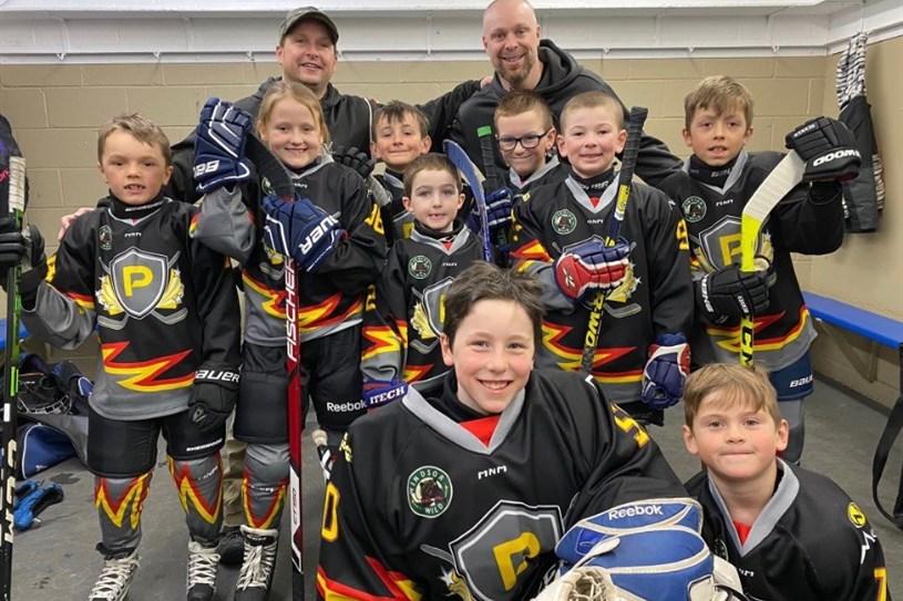 L’équipe novice 3.2. Joueurs : Jordan Eastman, Jeremy O’Donnell, Zack Côté, Raphaël Duquette, Émile Doré, Élodie Maheux, Mathis Larochelle, Ezaï Simard et Charles Lavergne. Entraineurs : Eric Doré et Vincent Larochelle