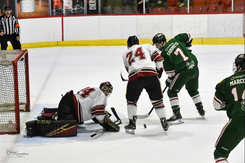 Le gardien Alex Leclerc a reçu 52 tirs des joueurs coaticookois pendant que Félix-Antoine Maheu recevait 30 lancers.